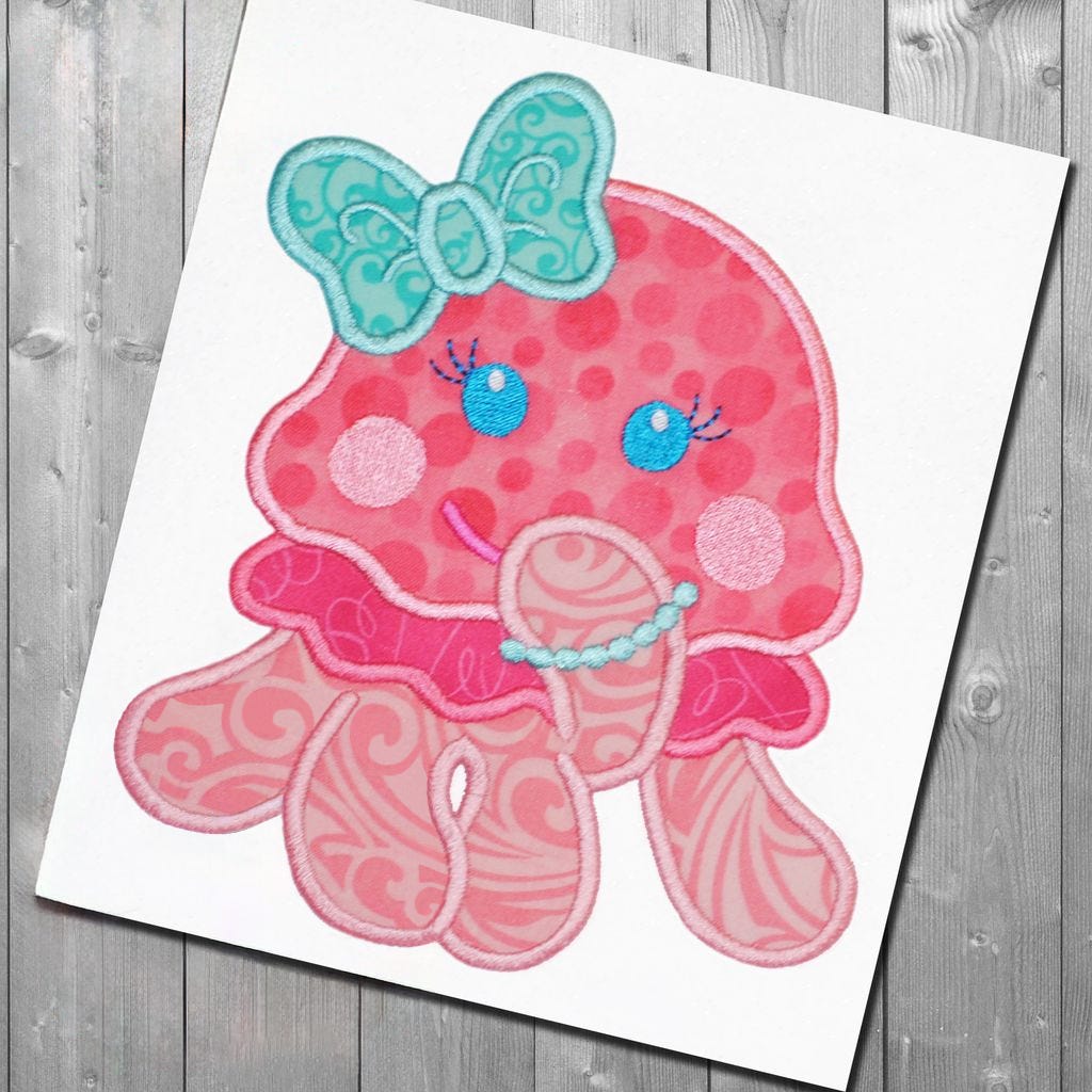 This pair of designs includes a Shy Jellyfish Boy wearing a ballcap and a Shy Jellyfish Girl wearing a hairbow.
