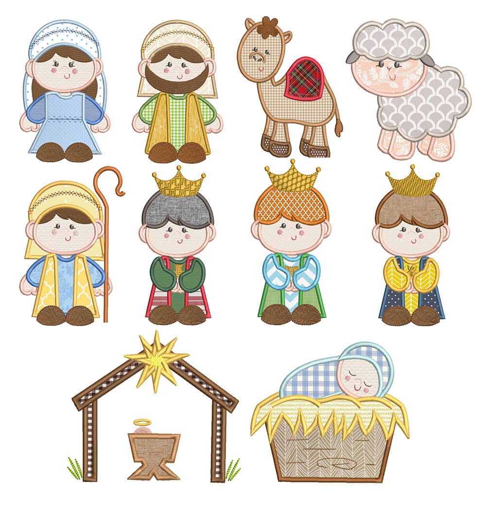 10 precious applique designs all about the Naitivity story.Ā