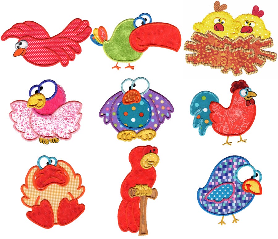 Silly and quirky, these funny birds are an adorable addition to your applique collection!