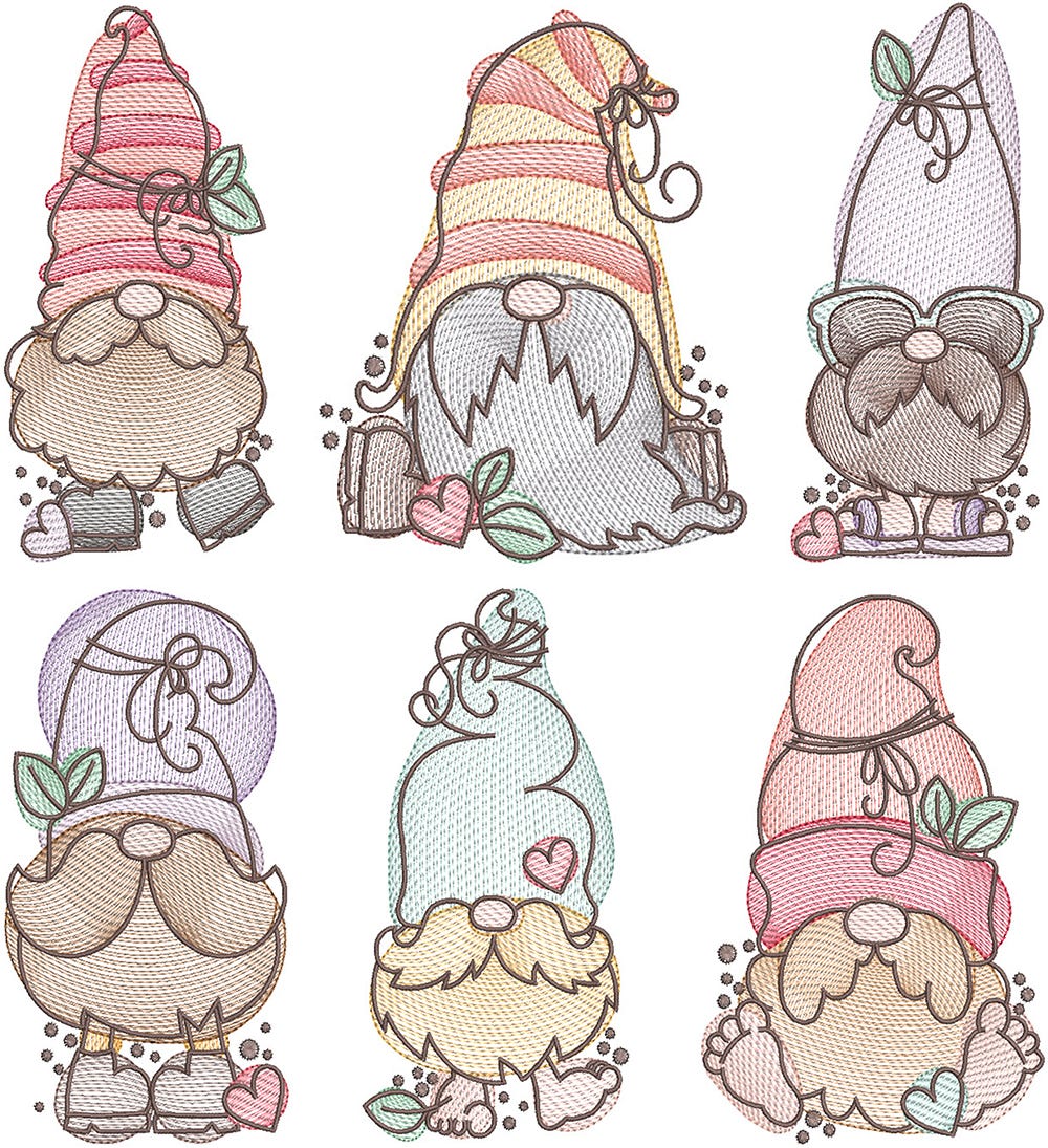 The light and airy "sketch" fill pattern allows for a quick stitch out. The space between each line of stitching varies such that it is more dense at one side of the shape than the other to create the shading effect. We do NOT recommend resizing designs with sketch elements in software.