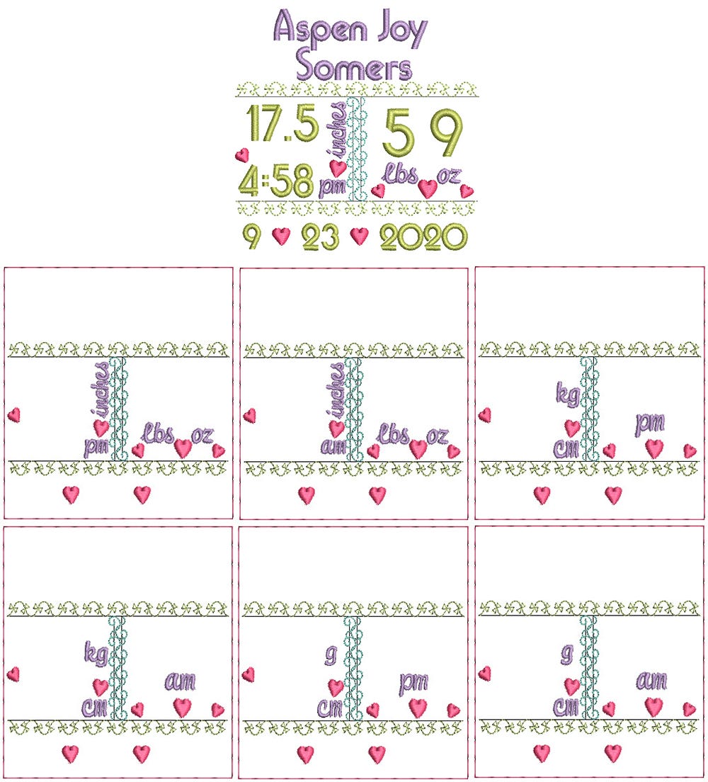 4 sizes included: 4x4, 5x7, 6x10 and 8x8