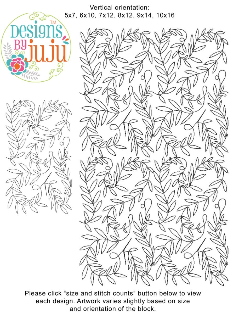 Includes continuous line single run End-to-End Quilting™ embroidery design as shown.