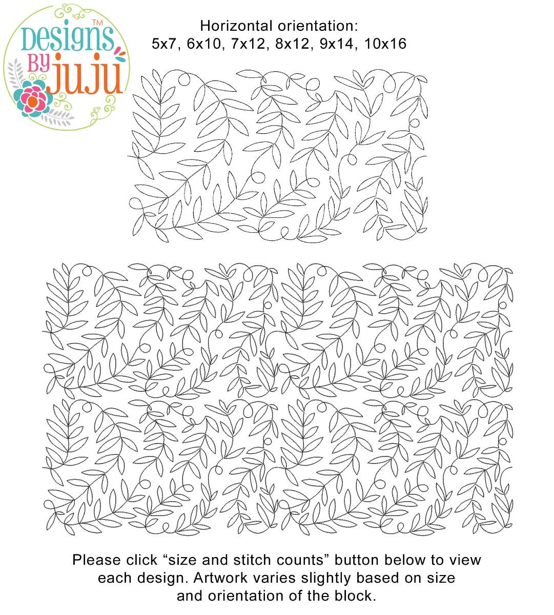 Please note: Both the scale of each pattern and arrangement of the motifs may vary based on the hoop size. Please click the "Size and Stitch Count" button to view the artwork for each size.