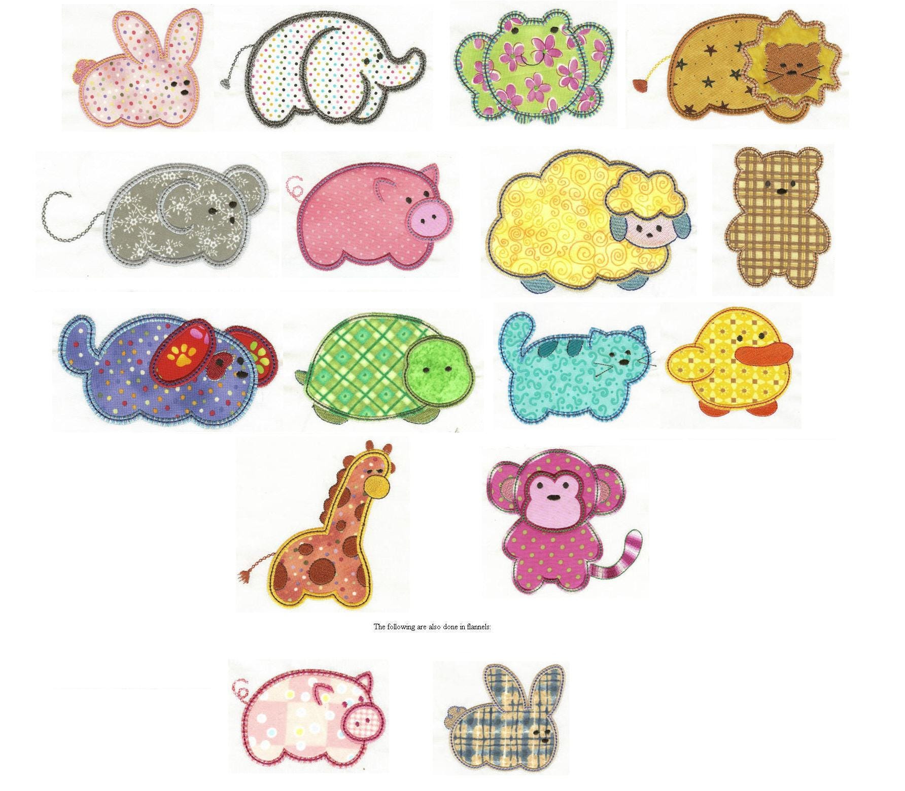 If you've been looking for a super sweet and oh so simple set of applique animals, look no further! These darling, very simple and effective animals are fantastic for quick projects, baby nursery decor, clothing, quilts, and look great done up with flannels! (sheep and turtle are done in flannel)