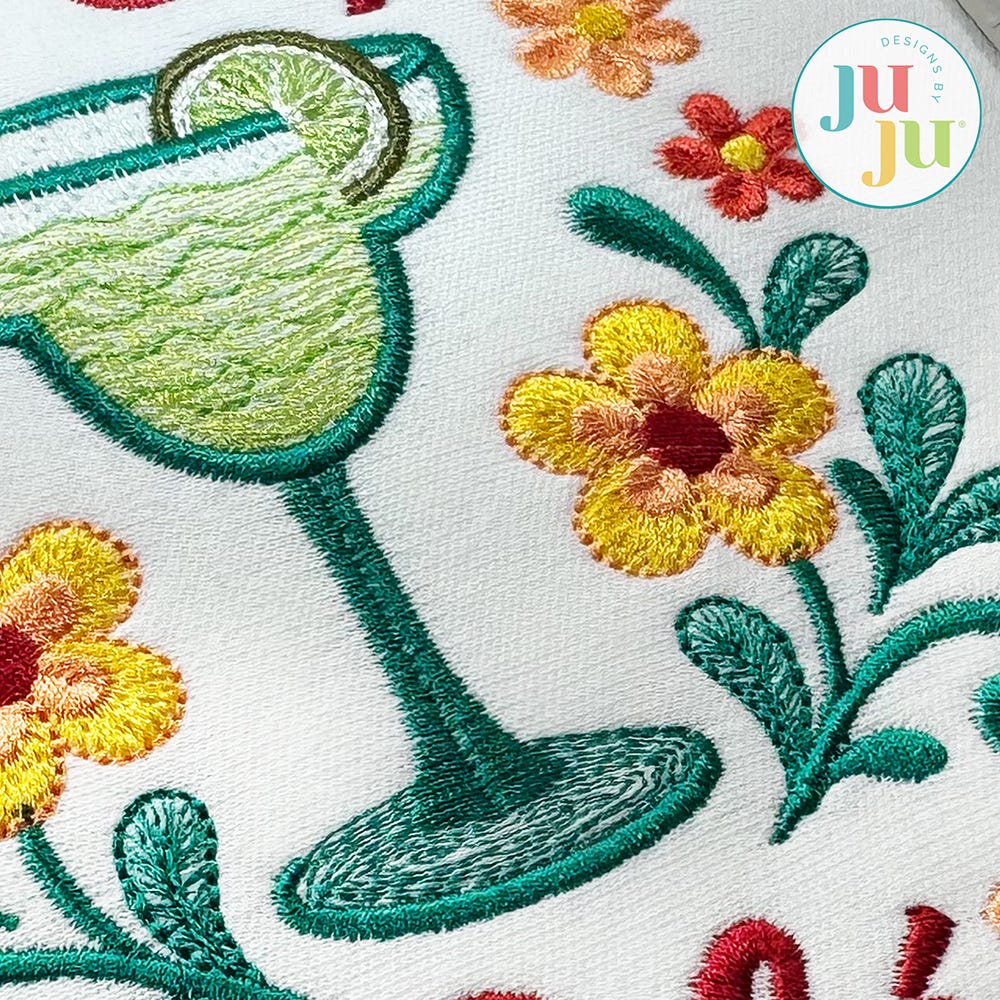 Sip Sip Ole! This whimsical word art design with a fruity drink and festive florals is perfect for Cinco de Mayo and beyond!