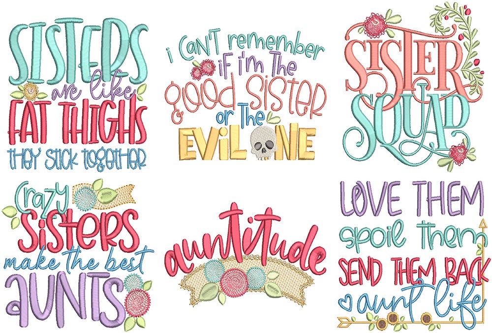 6 fun, sister and aunt themed word art designs!