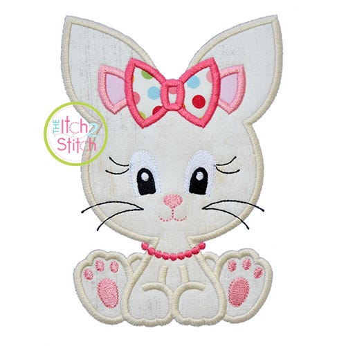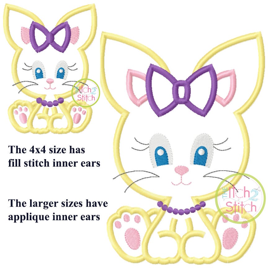 The 4x4 size has fill stitch for the inner ears, the larger sizes have applique inner ears.