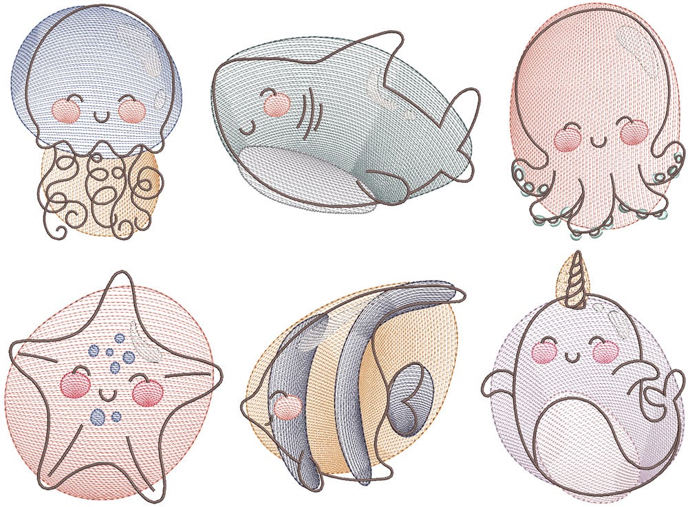 The light and airy "sketch" fill pattern allows for a quick stitch out. The space between each line of stitching varies such that it is more dense at one side of the shape than the other to create the shading effect. We do NOT recommend resizing designs with sketch elements in software.