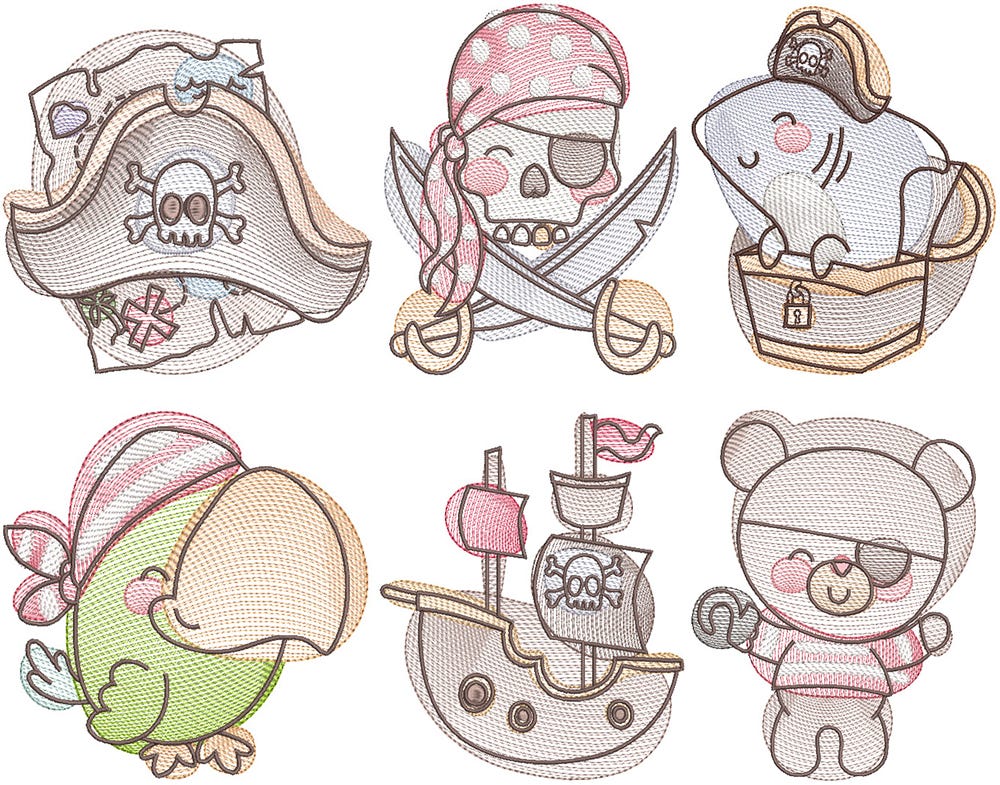 6 awesome pirate themed designs in our popular āsketchedā style!
