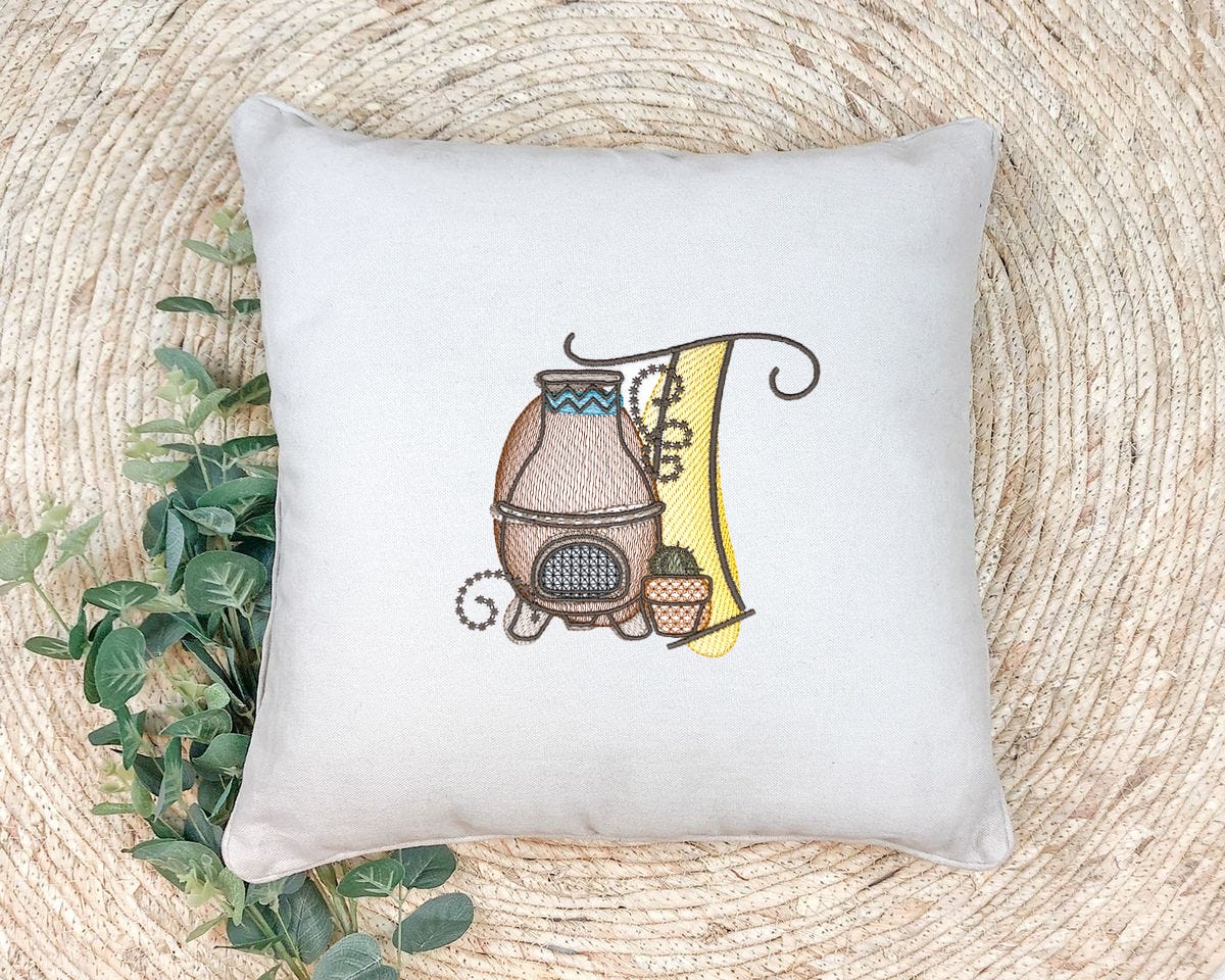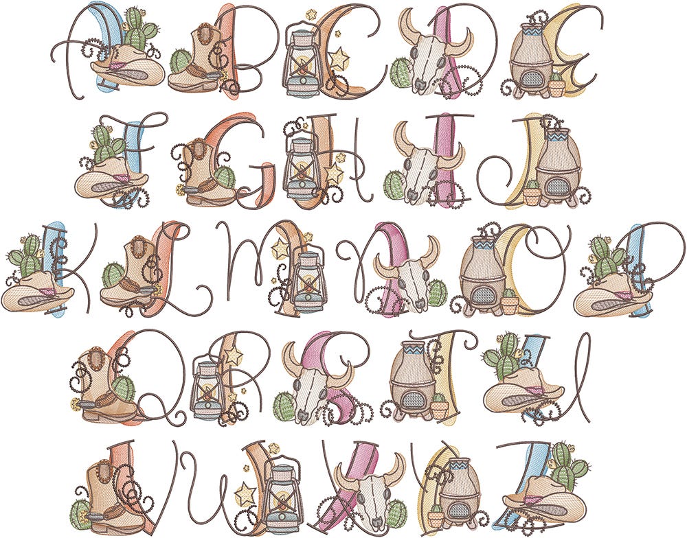 Our Sketchy Southwest Alphabet is embroidery-only with design elements that are a blend of sketch fill, motif fill and satin stitch outlines. The outlines are intentionally offset from the oval shaped fills as part of the stylistic artwork, as pictured.