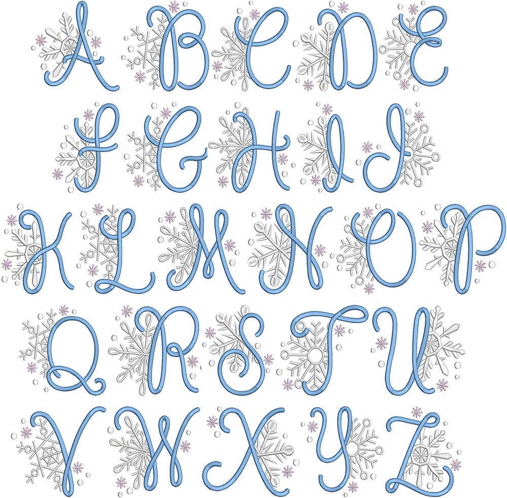 This alphabet is embroidery-only with satin stitch lettering and snowflakes. There is only one file per letter, as pictured.