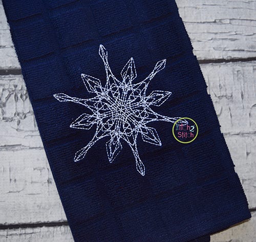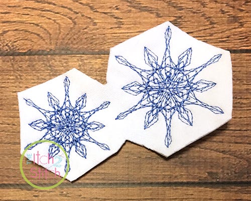 The 2" and 2.5" sizes of this snowflake are a single running stitch; the 3" through 8" sizes are a triple bean stitch.