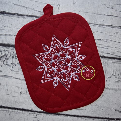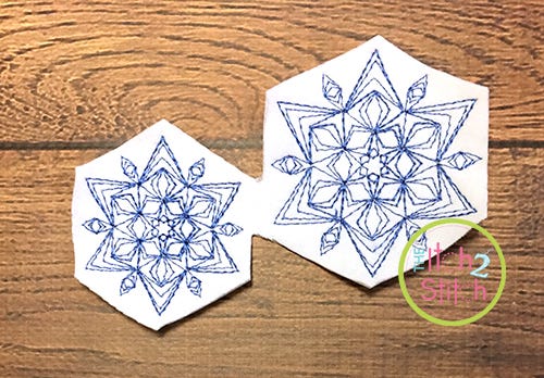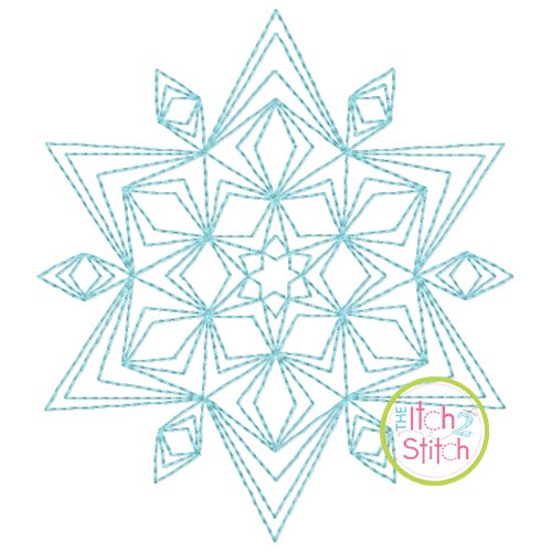 The 2" and 2.5" sizes of this snowflake are a single running stitch; the 3" through 8" sizes are a triple bean stitch.