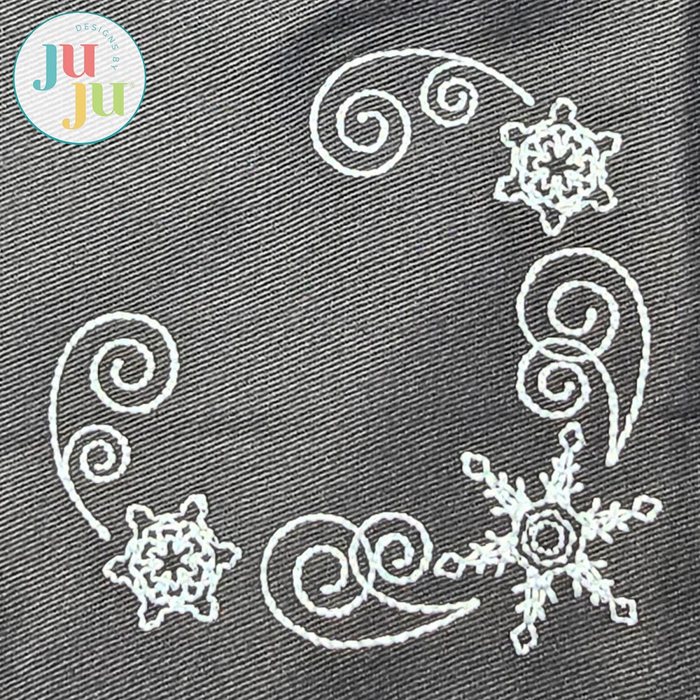 Add a swirl of snowy style to your embroidery projects! Our Snowflake Corner design is perfect for winter table decor, holiday parties, and more! The 4x4 size is designed to fit napkin corners. This design features beautiful bean stitch details for a graceful, delicate look. Designed to coordinate with our Modular Snowman in-the-hoop project series.