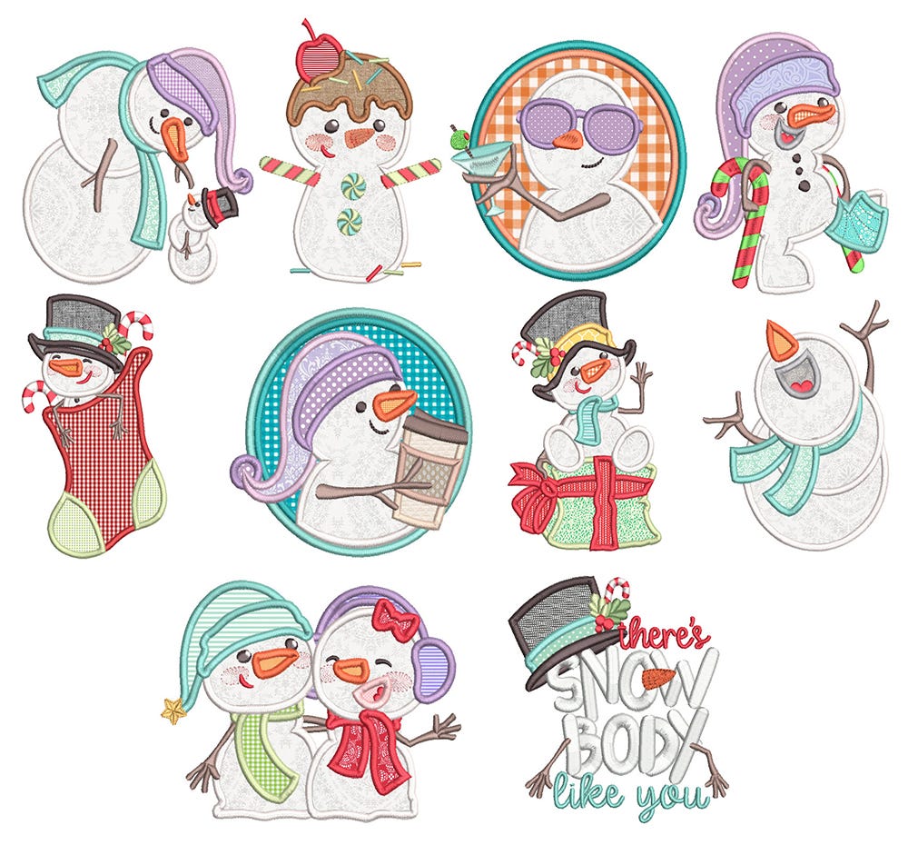 10 totally adorable snowmen designs in applique!