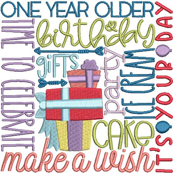 3 fun special occasion themed subway art designs! These embroidery-only designs have satin stitch lettering with satin and fill stitch design accents.