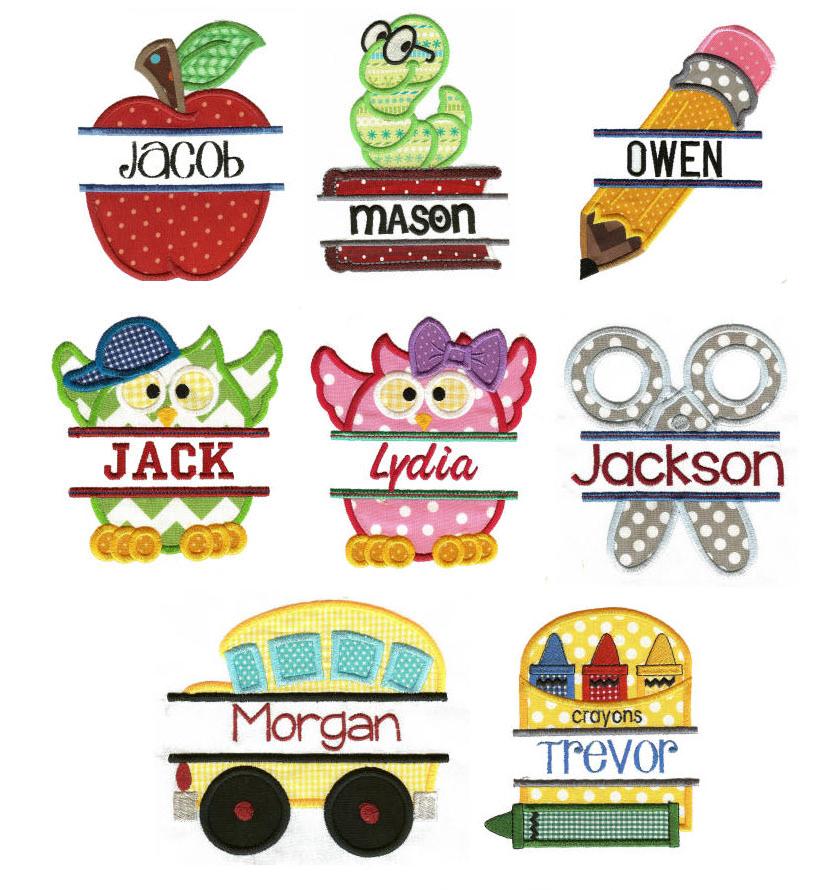 Split applique is very trendy right now and we've had our exclusive artist come up with some super adorable back to school designs for you!