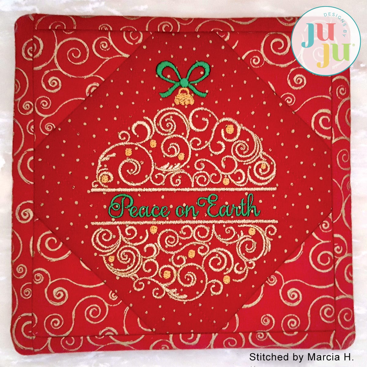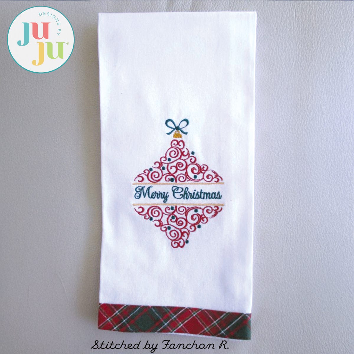Your download will will have 9 stitch files: 5 ornaments with popular Christmas sentiments as well as 4 ornaments with the split opening left blank. That way you can add your own wording or name.