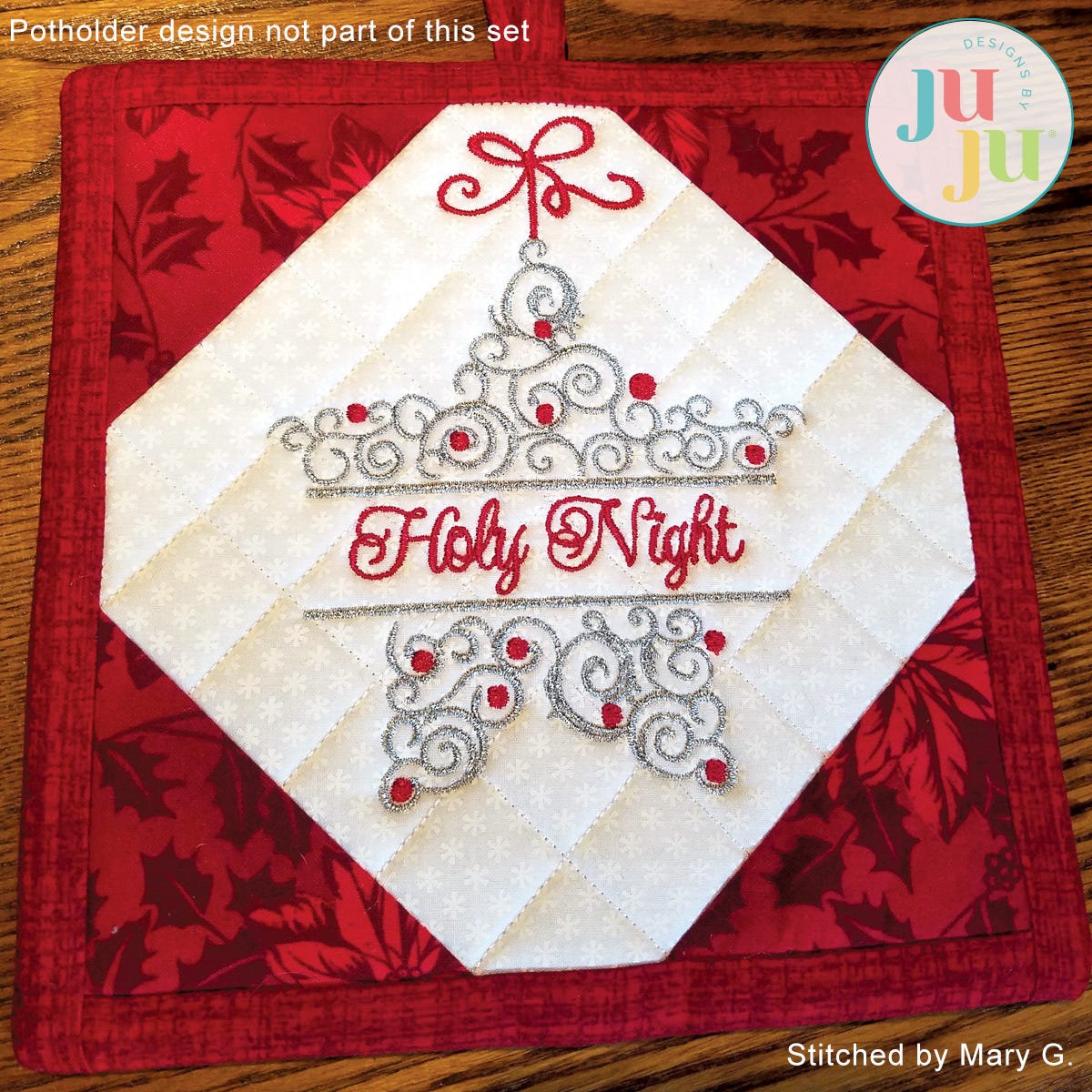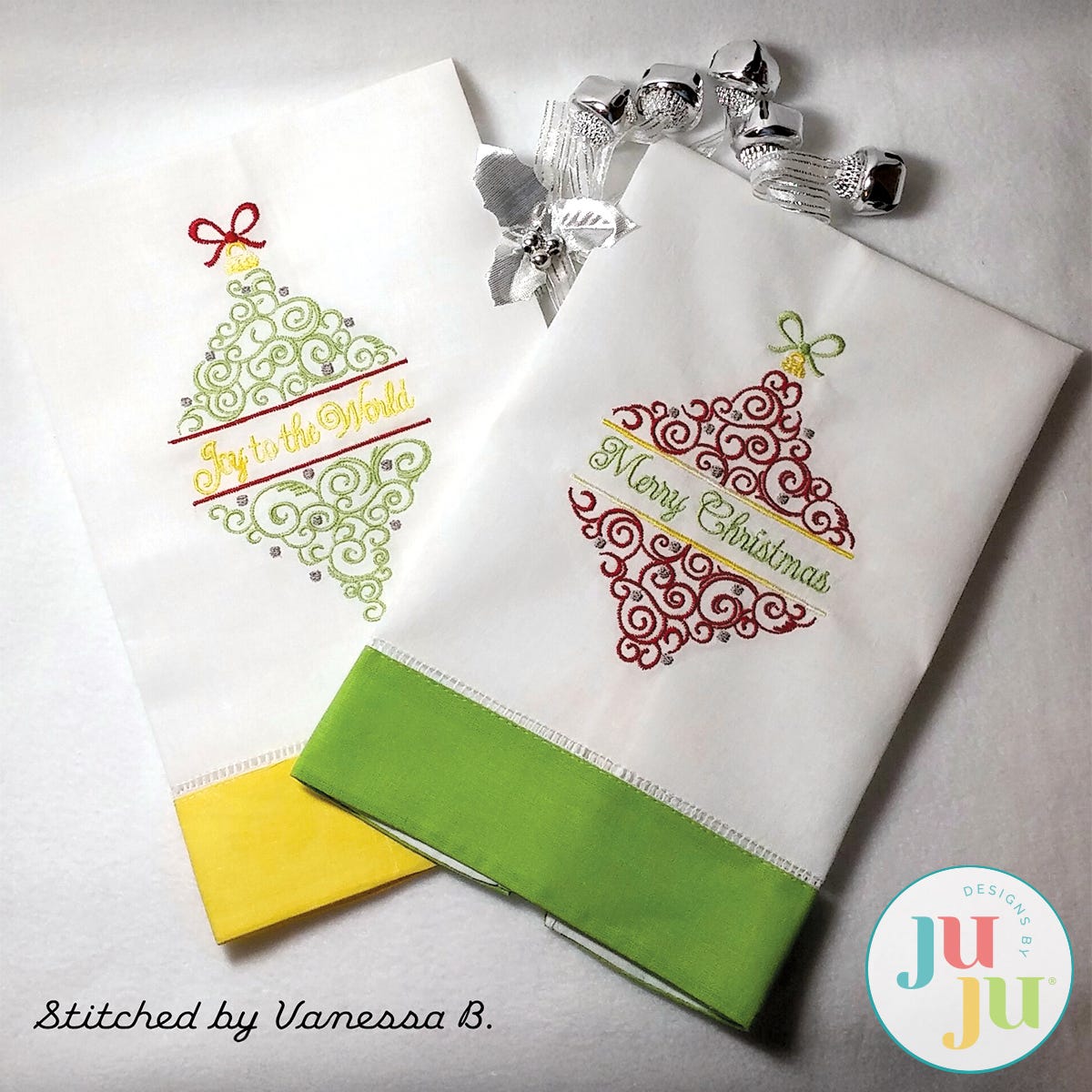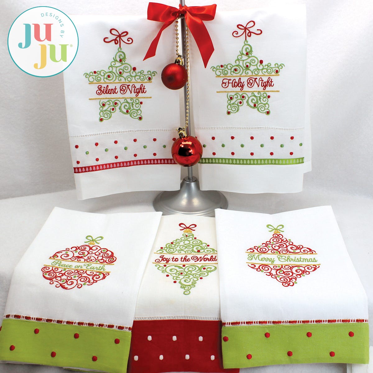 This set of Christmas ornaments for 5x7 hoops will help decorate your home for the holidays. Place the designs on guest towels, wallhangings, pillows etc. Stitches with a minimum of jump stitches. Great for decorating with Swaroski crystals.