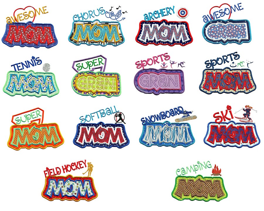 Ā Constantly on the go! Here are 14 MORE fun appliques for all the super moms out there...grans too! Ā If you like this set, you'll LOVE Sports Mom Applique Set 1..and we've now added the files to that set for the 4x4 hoop! See also Sports Mom Applique Set 3 with even more appliques for gram, nana and mimi!