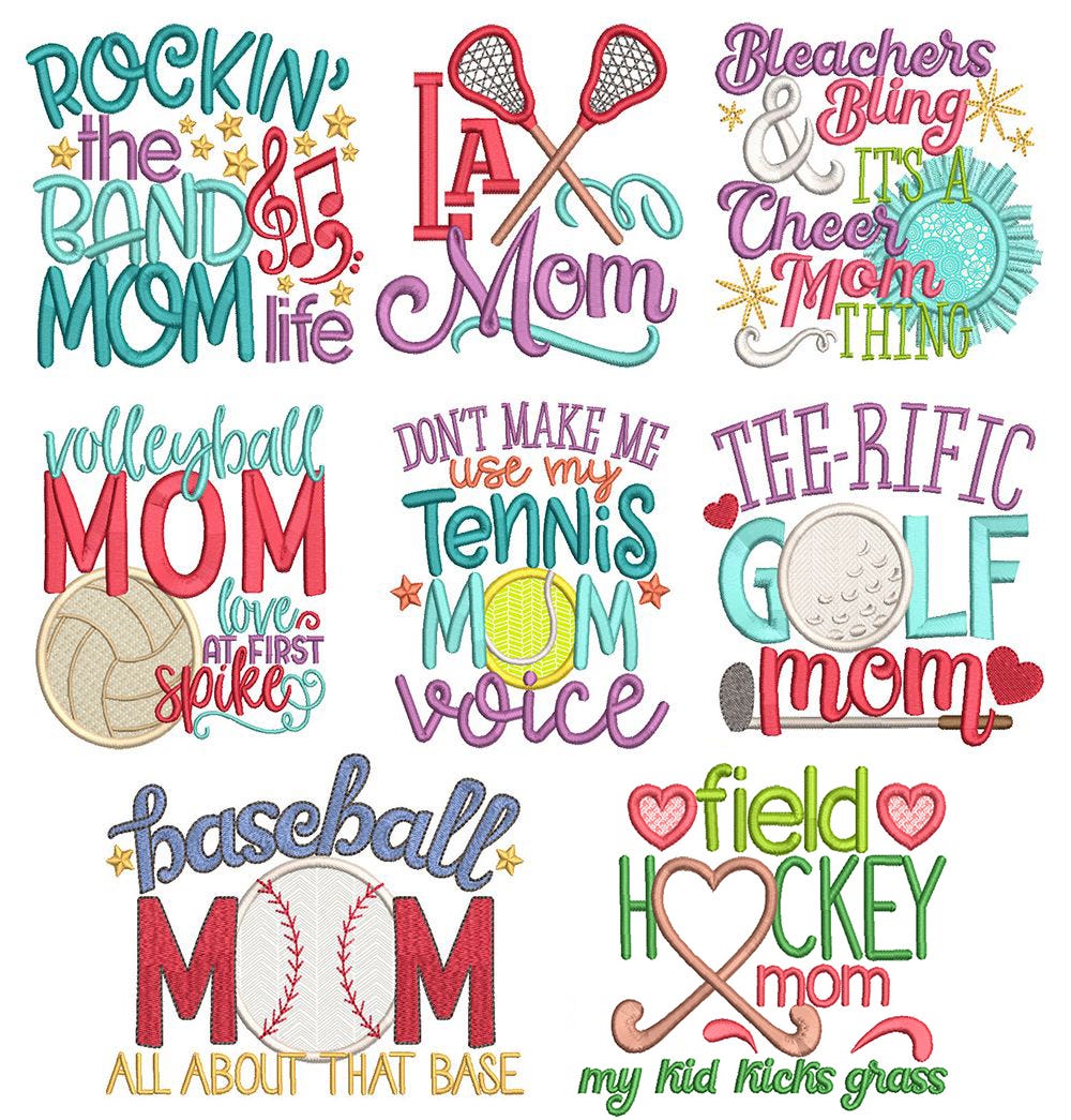 Ā 8 more awesome word art designs for sports moms!Ā *Please note some of these designs contain applique components.