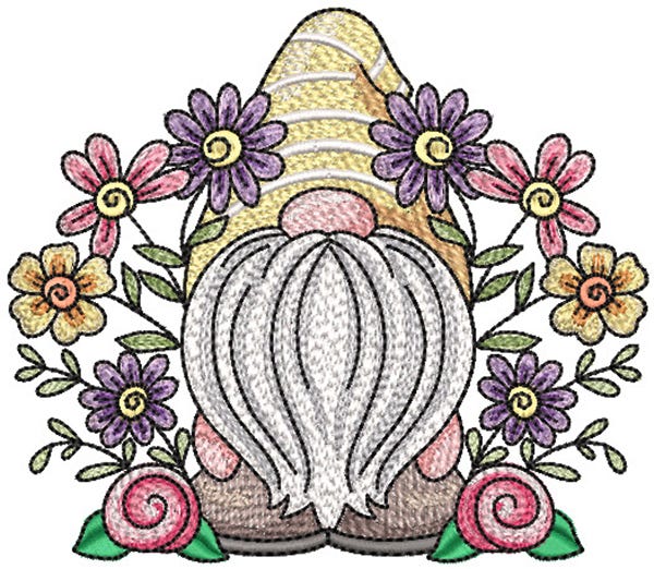 Spring has sprung! This sweet gnome is encircled by flowers.