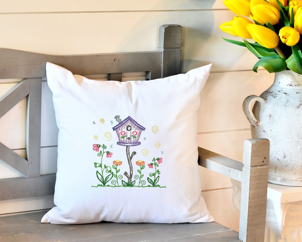 Make your home among the flowers ~ this birdhouse is planted in the garden! This design is perfect for vintage spring projects. This single is a bean stitch design for a hand-stitched look.