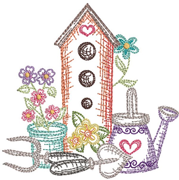 Make your home among the flowers ~ this birdhouse is ready to be planted in the garden! This design is perfect for vintage spring projects. This single is a bean stitch design for a hand-stitched look.