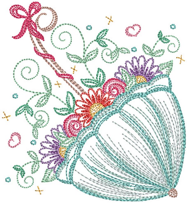 After the showers come the flowers! This floral umbrella design is perfect for vintage spring projects. This single is a bean stitch design for a hand-stitched look.