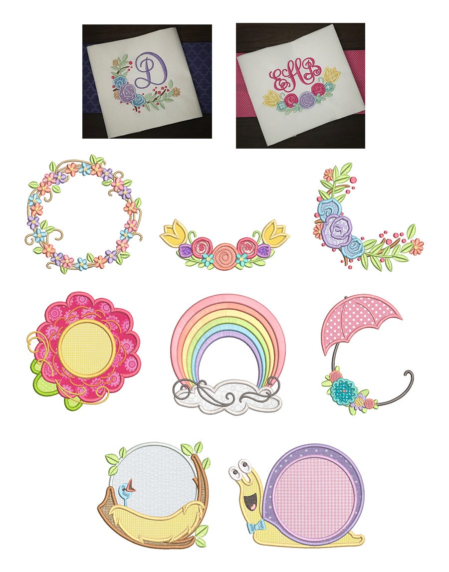 Get ready for Spring with these 8 adorable monogram frames! Please note that most contain applique components as shown.