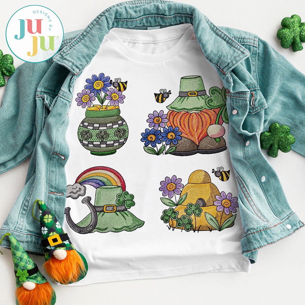 Looking for some St. Patrick's Day charm? You're in LUCK! This sweet embroidery-only set includes four adorable designs perfect for your festive St. Paddy's projects.