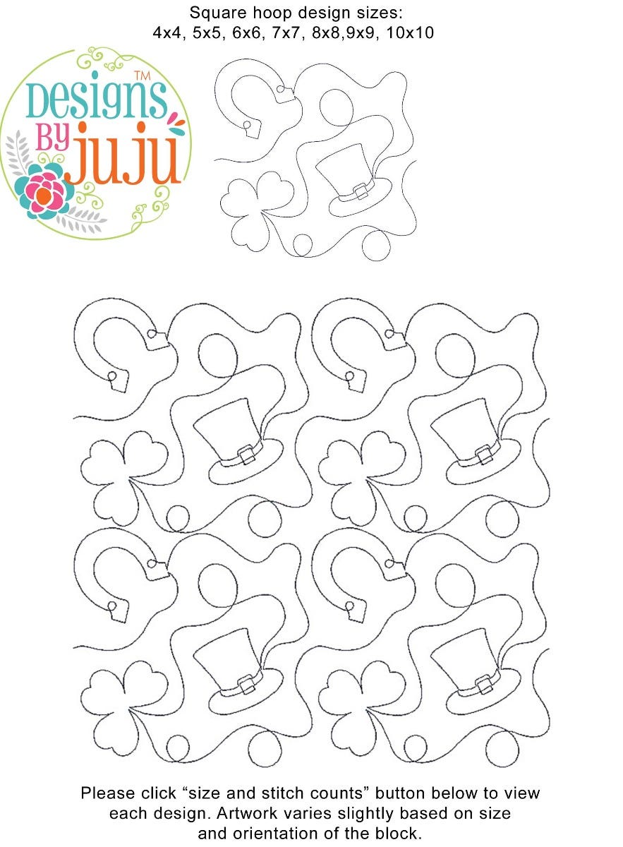 Includes continuous line single run End-to-End Quilting™ embroidery design as shown.
