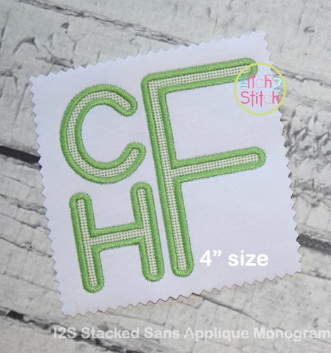 Completed monograms in the 4" will fit in a 4x4 hoop.