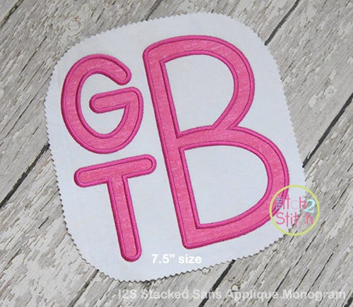 Completed monograms in the 4.5" and 5" sizes require a 5x7 hoop.