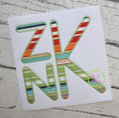 This is a zig zag stitch applique. Traditional satin stitch and bean stitch versions are sold separately.
