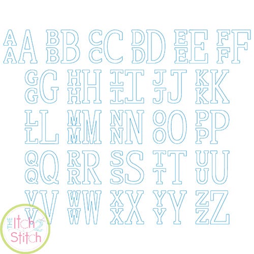 You will receive all Aa-Zz letters(52 files) in nine sizes.Ā This is a bean stitch applique. Each letter has three color stops: a placement stitch, and tack down stitch, and a final bean stitch. Use a layer of flannel under fabric and trim with a generous seam allowance for a raggy look; use a fusible product on fabric and trim close to bean stitch for a more polished look.