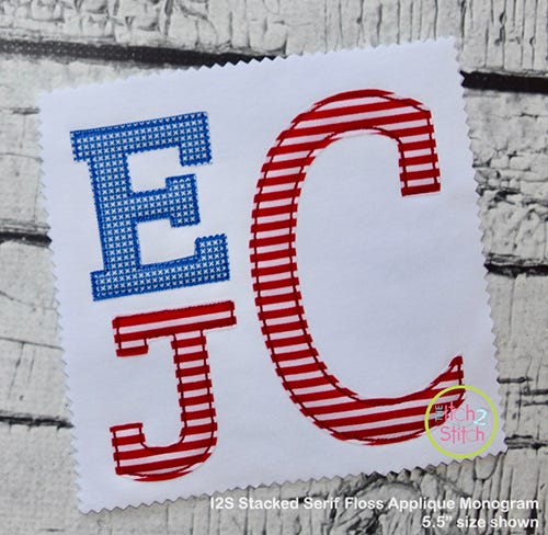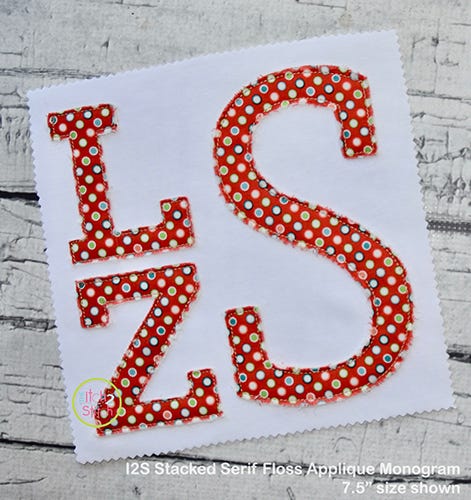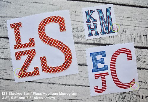 Completed monograms in the 4.5" and 5" sizes require a 5x7 hoop.
