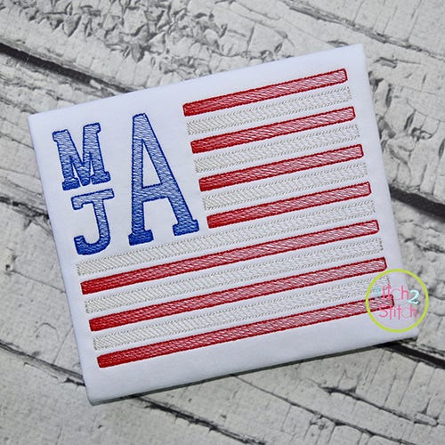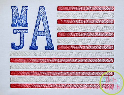This flag design is embroidery-only with two color stops. It is custom designed/sized to coordinate with our Stacked Serif Sketch Monogram (sold separately).Ā