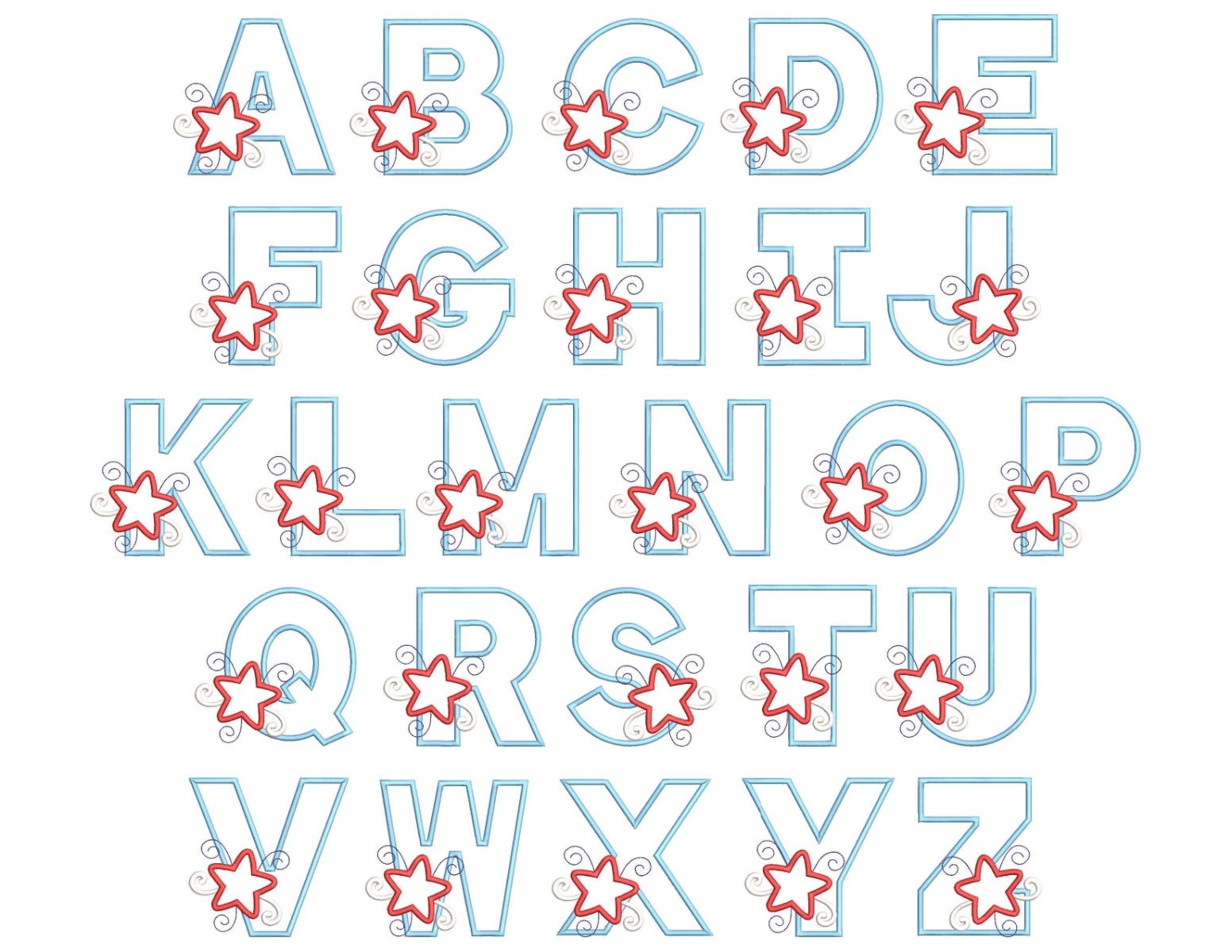 Be the Star of the party with this patriotic applique alphabet! Capital Letters A-Z included.