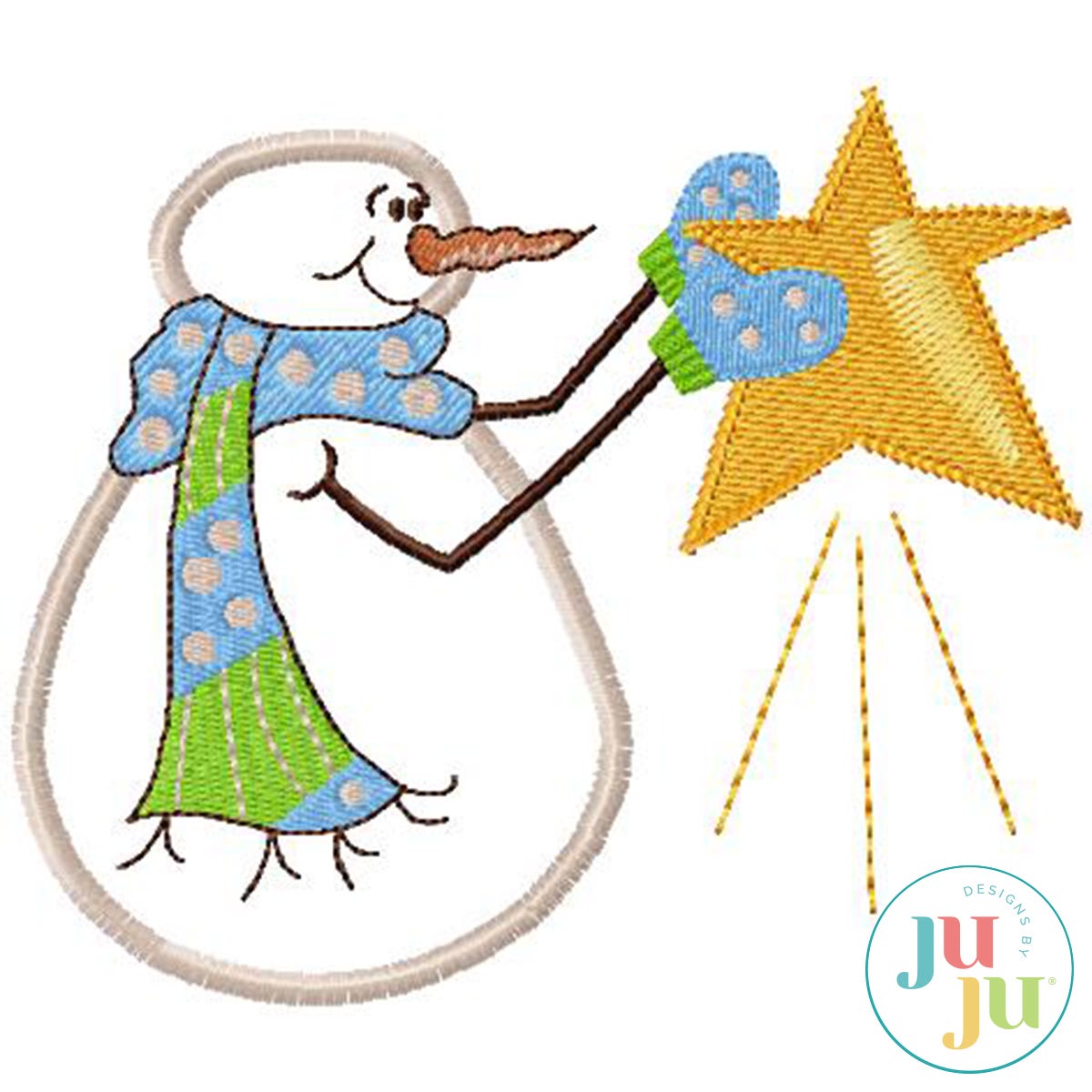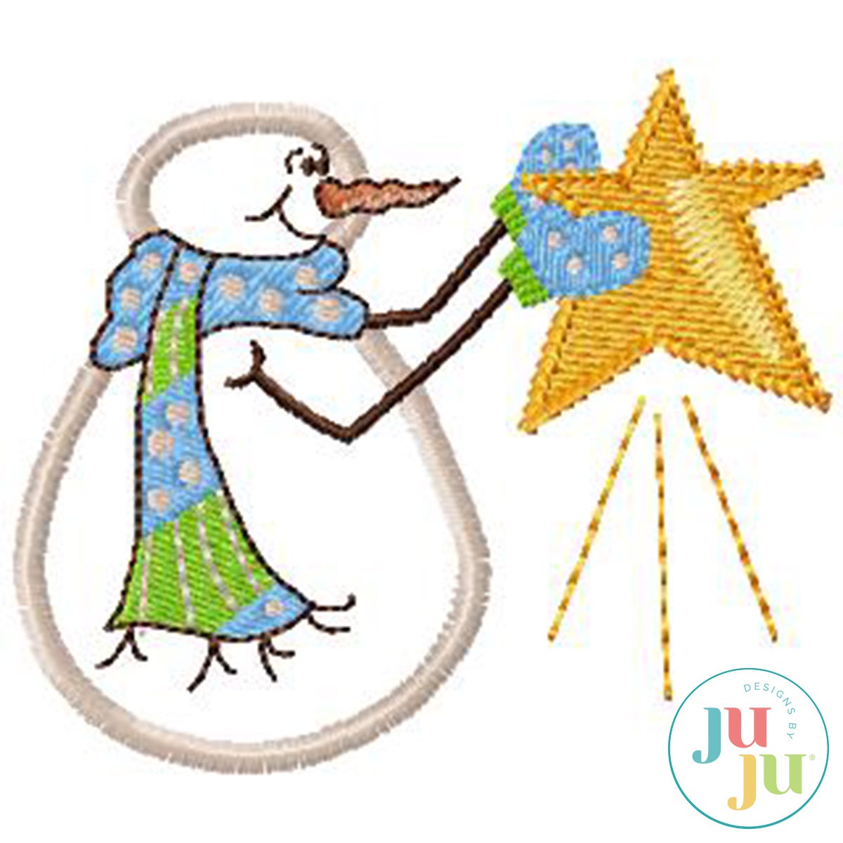 What an adorable, whimsical design for Christmas and all winter long. This snowman seems pleased with his catch and is not about to let go of it! Great for Christmas stockings, pillows, and wall hangings, but also very attractive on sweatshirts and totes.