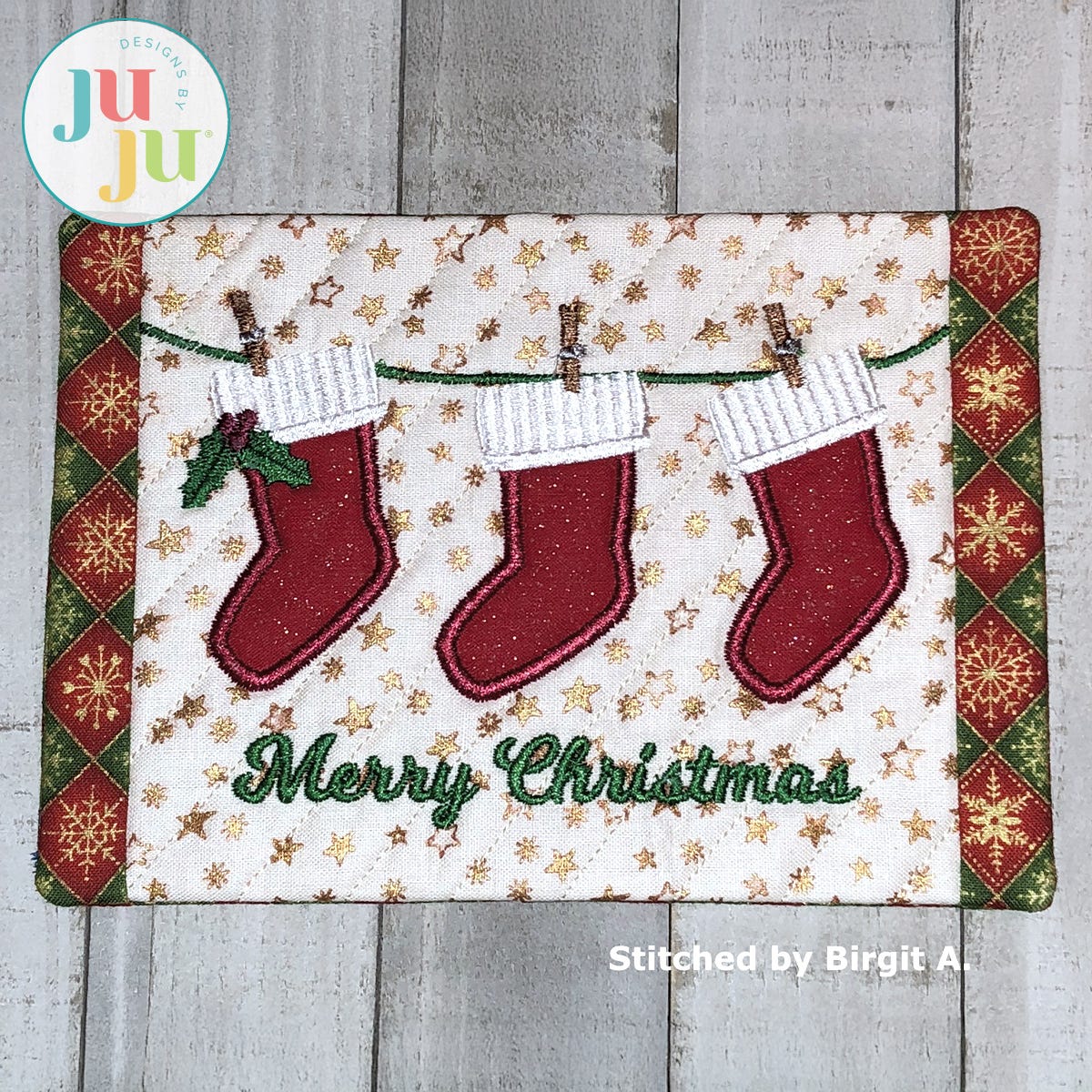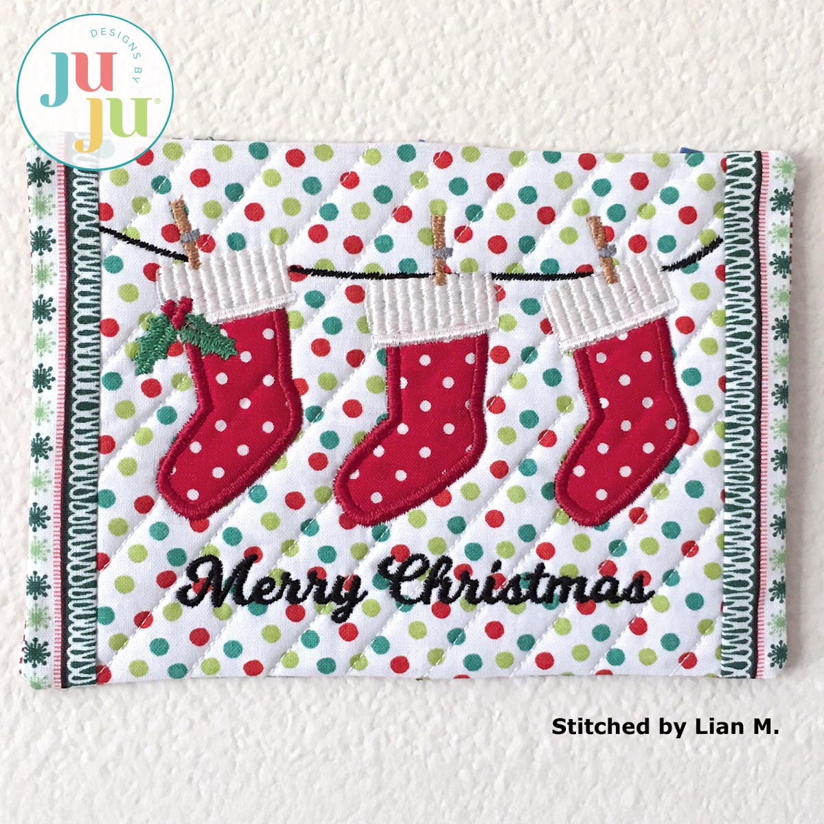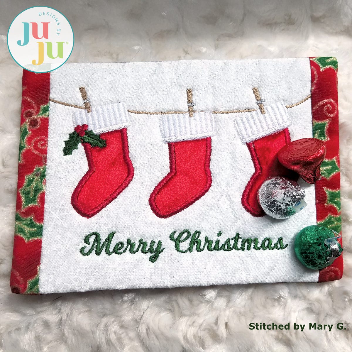 Designs by JuJu recommends the user friendly Embrilliance embroidery editing software to type out fonts in BX format, combine/merge designs, personalize and customize projects and more! Check out their programs Essentials, Enthusiast, StitchArtist , and Thumbnailer to learn more about their other useful, fun and easy features!