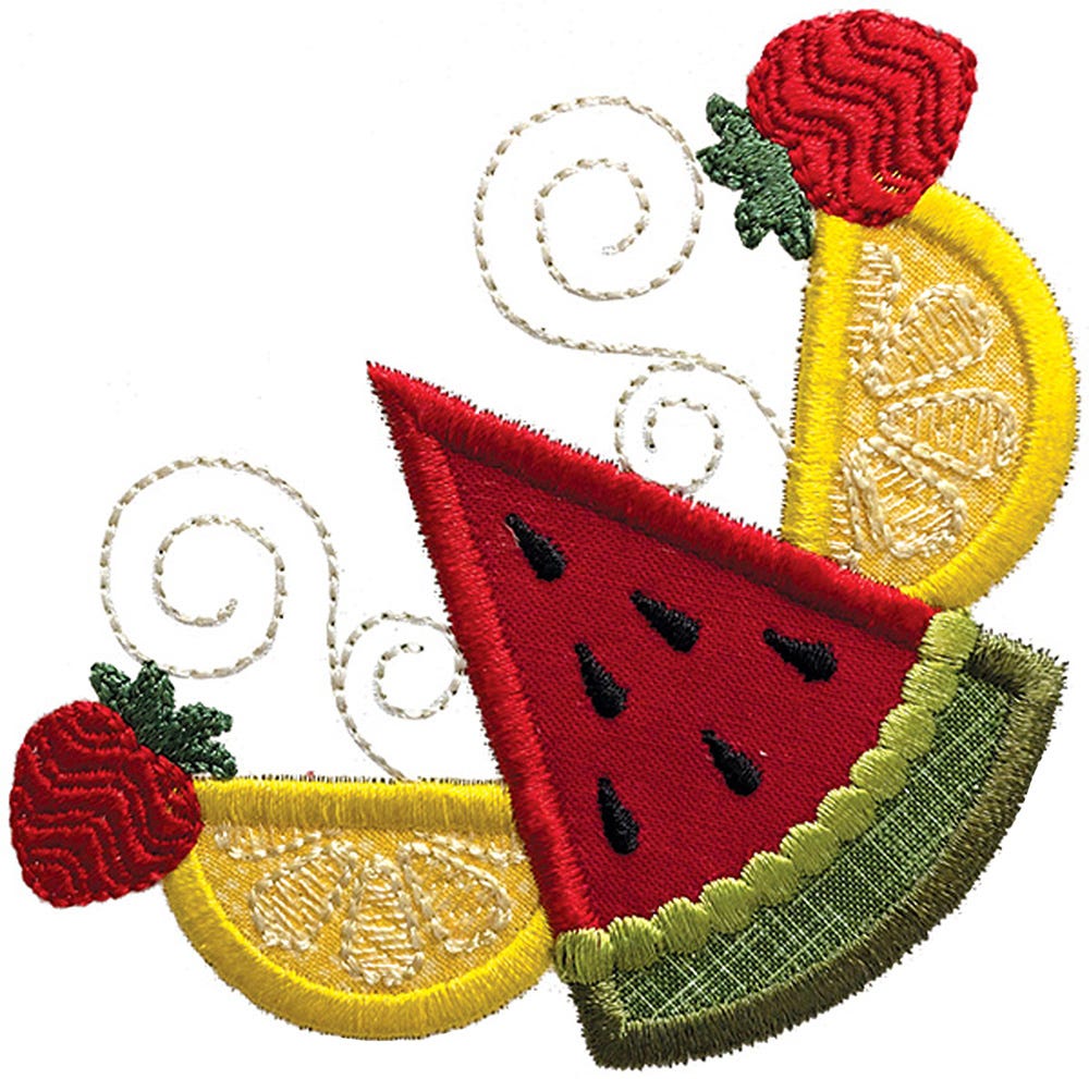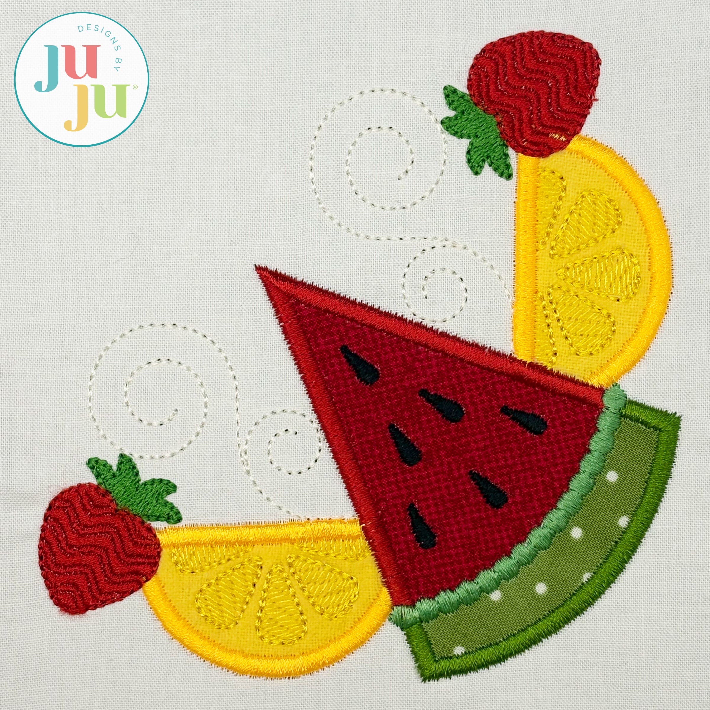 Add a splash of Fruity Flavor to your embroidery projects! Our Summer Fruit Corner design is perfect for summer table decor, picnics, and more! The 4x4 size is designed to fit napkin corners. This design features fill, motif, and bean stitch details as well as applique with satin finishing stitch.