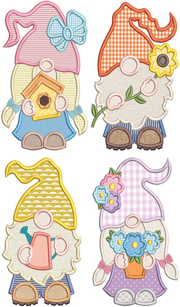 By popular demand: 4 fun summer gnome applique designs (that coordinate with our ITH Gnome Table Runner) are now available!