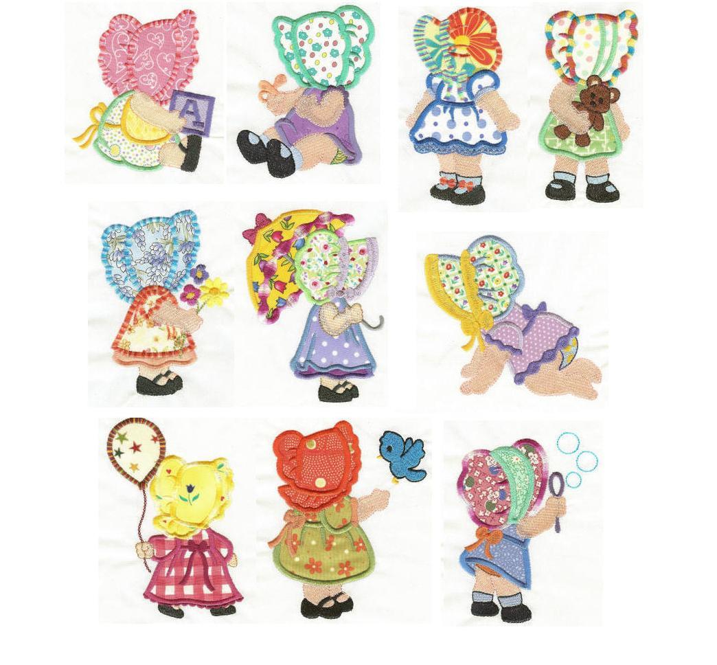 Sunbonnet lovers will just adore these precious sunbonnet babies in applique. A fantastic addition to our huge sunbonnets collection!