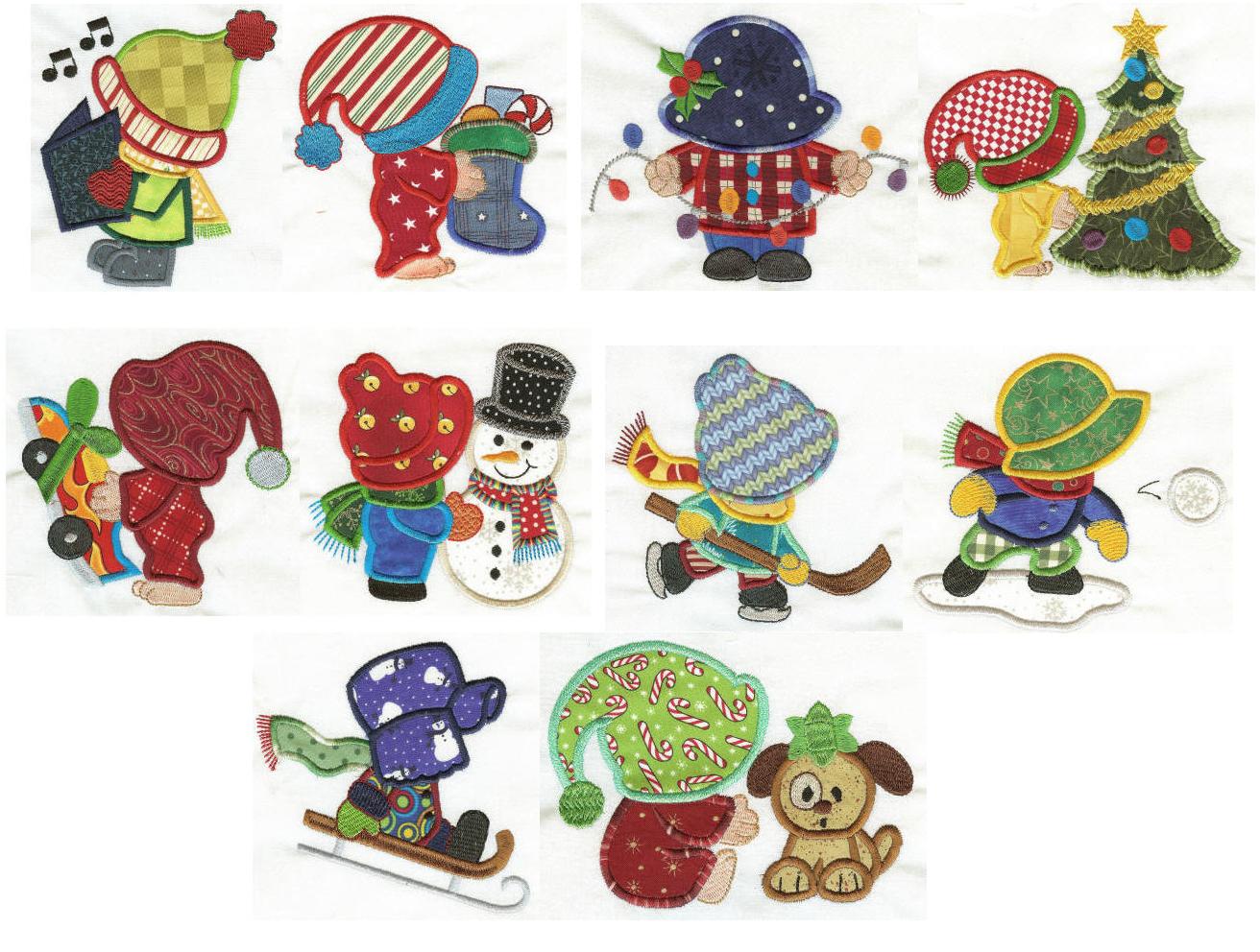 Have a blast using your Christmas scrap fabrics to stitch out these darling sunbonnet boys. Fantastic for your little boy this holiday season. Enjoy!