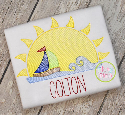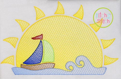 Please note this is not applique, nor is it a traditional fill stitch design. The light and airy "sketch" fill pattern allows for a quick stitch out. The space between each line of stitching varies such that it is more dense at the bottom of the object than top to create the shading effect. The objects are finished off with a triple bean stitch outline.