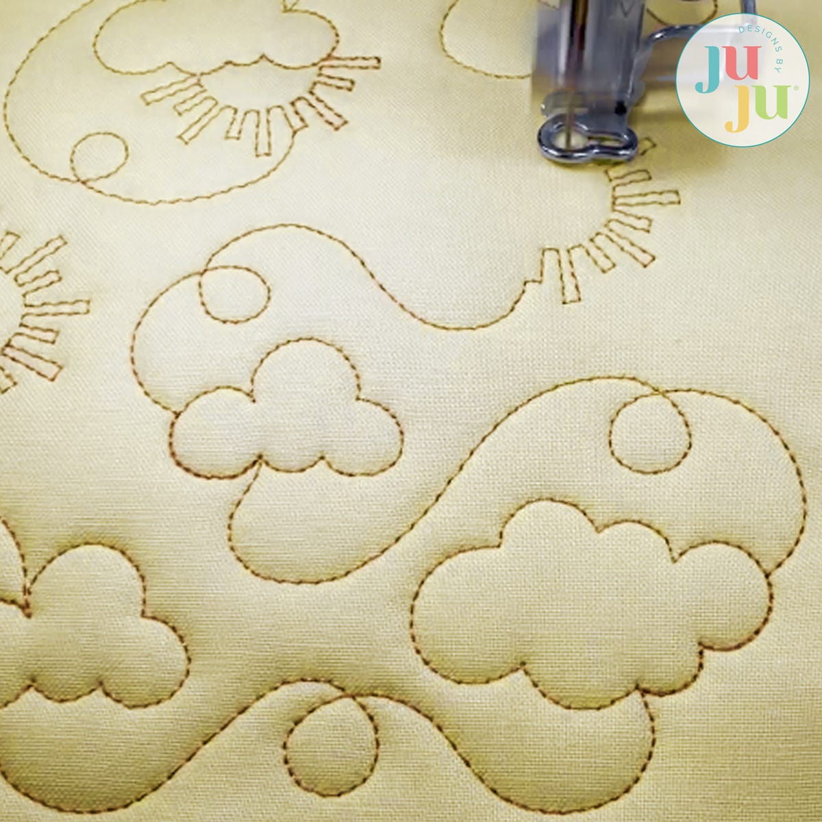Includes continuous line single run End-to-End Quilting™ embroidery design as shown. End-to-End Quilting™ is a trademark of Designs by JuJu® LLC ©2024.