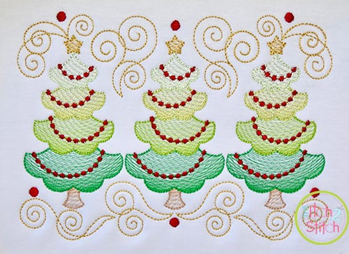 Please note this is not applique, nor is it a traditional fill stitch design. The light and airy "sketch" fill pattern allows for a quick stitch out. The space between each line of stitching varies such that it is more dense at one side of an object than the other to create the shading effect. Each object is finished off with a triple bean stitch outline. We do not recommend resizing this design in software.