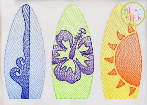 Please note this is not applique, nor is it a traditional fill stitch design. The light and airy "sketch" fill pattern allows for a quick stitch out. The space between each line of stitching varies such that it is more dense at the bottom of the object than top to create the shading effect. The objects are finished off with a triple bean stitch outline. Please note: the 4x4 size hibiscus has simplified features for ease of stitching