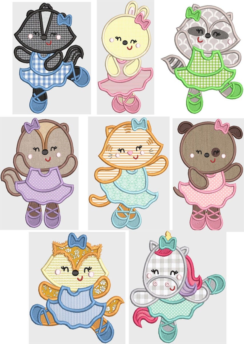 8 sweet ballerina critters in applique!